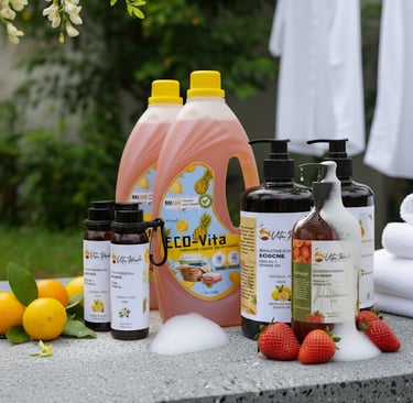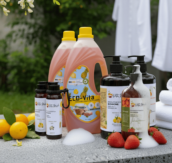 Kami menawarkan tiga varian aroma yang menyegarkan untuk produk sabun cair natural, cocok untuk berbagai preferensi pengguna dan suasana hati, dan wangi segar akasia untuk produk Eco Vita deterjen cair ramah lingkungan.